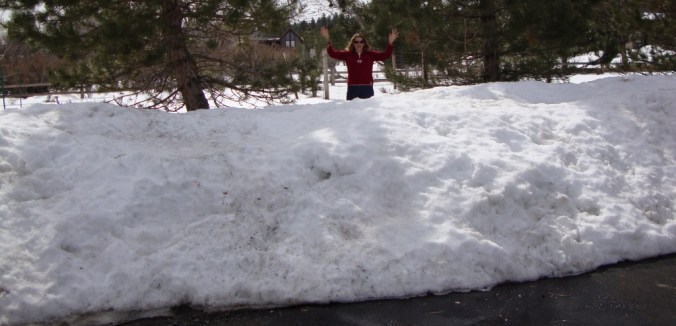 One more photo, here’s Nancy showing off her new collar bone and the snow!