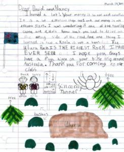 Who says all that time doing corporate pitches was a waste of time? Using photos that we’ve accumulated over the years, I whipped together about 30 PowerPoint slides giving an overview of Australia. The presentation covered Aussie money, animals, population, size, landmarks and some good old Aussie slang.