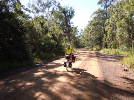 The dirt road started just at the campground and continued for about 7k, with a short bit of pavement and then another couple of Ks of dirt. It was hard-packed dirt, a bit of washboard but there was usually a good line to take. Fortunately the traffic was almost non-existent, so it was actually a nice quiet ride. Slow, due to the condition of the road, but nice. We popped back out from Bombah Point Road after about 17k to Pacific Highway at Bulahdelah and made a stop to pick up some supplies and a snack, as we were not sure if there would be any stores further up the route.
