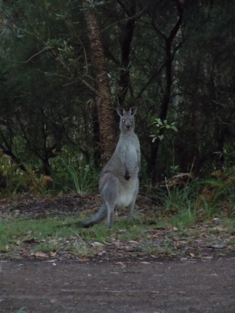 Sunshine and clear blue skies again this morning after a cooler night. When I got out of the tent there were at least three kangaroos wandering about the campsite – one with a joey. It was pretty quiet in the campground last night, but we had another visit this morning from the girls down the way just to say good morning and perhaps to tell us that they had already had pancakes for breakfast.