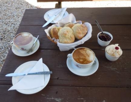 1. Wow! Those scones look like the ones that I first tried when Down Under years ago, complete with all the fixings! YUM! Thanks for the caterpillar story, too. Nancy, when the negotiating gets heated, remember that even a bad day on the road is better than a good day at work… or something like that! Good call on the hotel stay. Happy and safe trails!