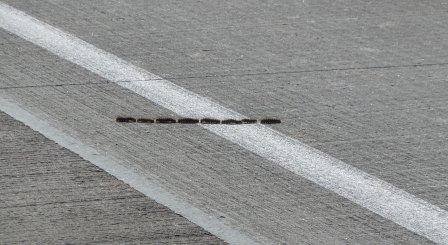 We had a great ride from Moreland, benefit from great tailwinds. I think we covered 28k in less than an hour, which is not bad on loaded touring bikes. Certainly the fastest we have gone on this trip so far. At one point we had pulled over to do something and saw this line of furry caterpillars on a suicide mission, heading out to cross the highway. As they got near the road a big truck went by it didn’t hit them but the wind from the truck blew the line into all kinds of disarray. As we left them they seemed to be regrouping to try another shot at crossing. Sadly, I expect they will join the many other little brown spots we see on the roads…