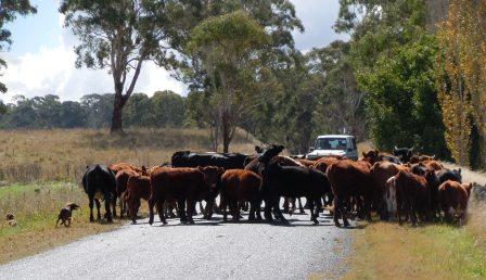 Anyway, after we finally disengaged ourselves from our interesting local we headed east toward Mount Mitchell – the diversion. There were quite a few steep ups and downs and I began to wonder whether this diversion was really worth it, as we had an alternative straight ride north into Glen Innes on the New England Highway. It was very scenic though, and traffic was almost non-existent. We took a left on Glen Leigh road and finally headed north – though now on a dirt road. We had about 10k of dirt – pretty hard packed so it wasn’t too bad. We continued on once it became paved and it took us all the way in to Glen Innes. In all, on this road we were passed by 3 cars, 2 motorcycles, 1 tractor, and 40 cows (on the road, not in the paddocks). We even stopped to have a chat with the old farmer moving his cows from one paddock to the next.