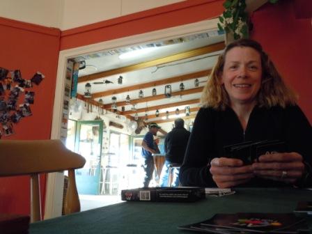 After setting up the tent and eating PB&J sandwiches for lunch, we headed into the pub to hang out for a bit. Unfortunately the beer selection is not stellar so we split a big bottle of lemonade while playing cribbage and gin rummy for a couple of hours. I am ahead on gin rummy, Dave is ahead in cribbage. I have never played cribbage before but my sister Linda gave us a little travel game so we are trying it out. Seems to be a bit of a complicated game (maybe it’s just Dave’s instructions) but hopefully I’ll get better at it! I think I am at a bit of disadvantage as Dave spent his formative years living in Nevada so seems to have a better grasp at any kind of card game.