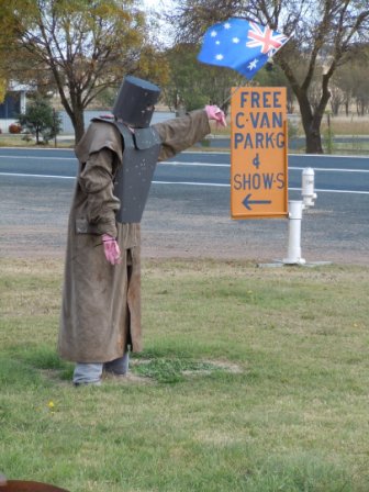 Deepwater doesn’t have much other than pubs though there was a cute little café in town that we went past. There is supposed to be some good fishing, and we saw a sign to a golf course. It also lays claim to some connection to Captain Thunderbolt – there is another Captain Thunderbolt lookout nearby. A bit like all the towns in Victoria try to lay claim to Ned Kelly, all the ones around here try to lay claim to Captain Thunderbolt. Not quite sure if the man out front of the pub is supposed to be Ned Kelly or Captain Thunderbolt, or just some guy in pink latex gloves trying to woo customers – you make your own story, I think.