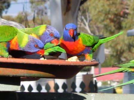 Rainbow lorikeets feeding at camp