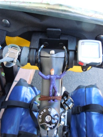 We probably have too much stuff with us and we may drop some things that we are not using as we head further north. Though Dave has picked up a passenger along the way – kind of an additional mojo for his bike that he calls Adventure Man. We both have mojos (or talismans or whatever you want to call it) for our bikes, as we have done for many years. Mine is a lovely little drop that my mom gave me that we hooked on to the bike, unbeknownst to her (thanks Mom!) and Dave has a lovely jade stone that was given to him by his Chinese colleagues that is provides protection for travellers, which is intended to be worn as a bracelet but which he has wrapped around his handlebar stem. I also received one as a gift and am carrying it with us as well, in a safe place. We intend to do a gear list one of these days so you all can see just how much we are carrying – Dave’s bike weighed 52kg when we left Sydney, though I think some of that has migrated to my bike!