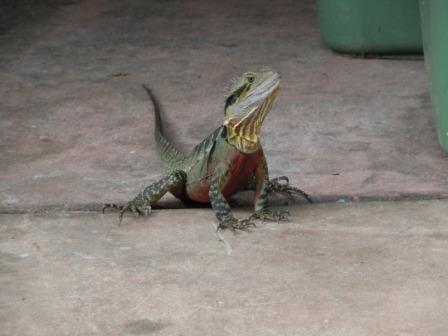 We had a nice rest day today in Noosa. Went to the grocery store, the local bike shop, did laundry (it was sunny so everything got dry even!), cleaned bikes and visited with the local fauna (water dragons and bush turkeys) and then went to the beach and had an ice cream cone. The sky was starting to darken with clouds and we could see lightening in the distance so we headed back hostel to make dinner. We made it back to the hostel just in time before the deluge started – it poured and poured, with lighting and thunder and the whole bit. So, good timing on the rest day and the storm! And, for the first time on this trip we actually have another rest day tomorrow – feels nice to stay put for another day. Hopefully the storms will have passed and we will have a sunny day, but no need to worry about that for now.