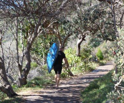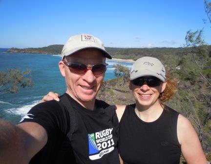 Keeping with tradition, we had a big brekkie this morning – eggs on toast with homemade salsa and bacon. We then walked through Noosa Heads National Park, spotting a koala and large green sea turtles. Later in the hostel, one of the other guests reported that “someone” had spotted a koala in the park today (hey that was us – we reported it to the ranger as you are supposed to). We hung out a bit, called the moms on Skype and also managed one more hike to the Noosa Lookout for a sunset shot. We are now cleaned, rested and ready to cycle again.