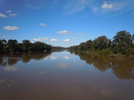 The road back out of Tin Can Bay was a completely different experience this morning than it was coming in yesterday. No traffic today at all, which made a huge difference. The turn-off to Maryborough was about 13k back from the town proper, and was really the only turn we had to make all day until we got into the city of Maryborough 60k later! The scenery was pretty much the same the whole way – what was called a state forest but was really a pine plantation – miles and miles and miles of pine trees in various states of growth – all in straight rows. We didn’t stop much – but traffic was very light and the road was relatively straight with a slight tailwind so it was a pretty enjoyable ride. We did stop once to finish up our mandarins from yesterday and again later when we reached our first sugar cane field.