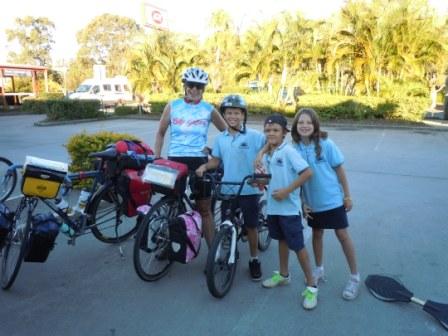 We were so glad to finally get to Agnes Waters – this is the bigger township that is just before you get to Seventeen Seventy. We stopped at the grocery store to pick up some things and attracted a local welcoming committee of school kids. We had another 6k to ride to Seventeen Seventy – this is the place that several people have recommended to us. Thankfully they were easy kilometers. We passed one caravan park along the way but wanted to check out another one that we had heard was right on the beach. We headed that way and looked at it but it was pretty packed and did not really look very inviting. So, we headed back to the Captain Cook Caravan Park and booked in for two nights – we need a rest after today! We call this a double day, as we feel like we rode two days in one – 138k is a pretty long day on a loaded touring bike but it gives us a good feeling for those days ahead when we hit the outback and have to do some long days.
