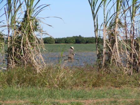 We made a pretty early departure from the campground and stopped in the town center to get some groceries to resupply. I think we finally headed out of town about 9:00. We went through more farmland today – lots of tomatoes and sugar cane. We stopped early on at a farm stand and picked up a package of bananas. There were also watermelons and rockmelons but we couldn’t figure out how to tie them on to the back of the bikes… I saw some sweet potatoes being loaded into some big storage containers, and then sure enough Dave spotted one in the road so of course he stopped to pick it up.