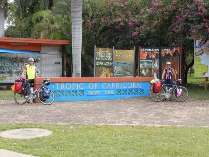 Roope Road dropped us into Rockhampton right at the information centre where the monument for the Tropic of Capricorn is located. That isn’t really the location of the actual line, but for some reason they stuck it there – probably too dangerous to have it out on the Bruce Hwy! Anyway, we have officially reached the tropics – pretty exciting! We took the obligatory pictures and got some great information from the guys at the centre. We rode into the city centre and came upon a Sexie Coffee coffee shop, so stopped for some lunch and a good coffee before heading toward the YHA.