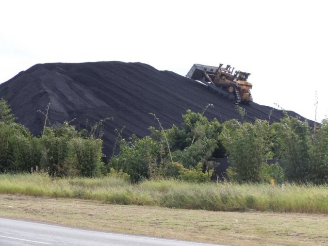 There weren’t many other towns along the road – just lots of open plains, sparsely populated with trees. We saw lots of cattle trucks go by, evidence of the farming around. We stopped for lunch in the little town of Bluff and had a couple of great toasted cheese and tomato sandwiches that hit the spot. Bluff is a major rail assembly depot for the surrounding coal basin and there were lots of train cars along the rail. We rode past a massive pile of coal just out of Bluff that was being moved about by a big huge cat – there was a conveyor belt that took the coal over the road to waiting rail cars on the other side. There must be some money in this mining thing!