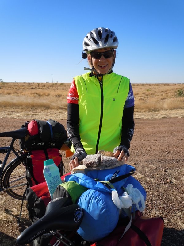 Tomorrow we are staying here. The next town is 170k, which we are not up to back to back. There are a number of interesting things to see in town. This town is purportedly the place where the famous ‘Waltzing Matilda’ was first performed and Banjo Patterson supposedly wrote the song on a station near here. There are also some dinosaur fossils relatively nearby – the Lark Quarry is the site of the world’s only recorded evidence of a dinosaur stampede. Not sure if we will make it out to the dinosaurs as it is about 110k south of here – a bit too far for a ride on a rest day. There are also lots of opals in the area and there is large visitor centre and many shops. We’ll check them out and rest our legs before another big day on Thursday. But first, a good night’s sleep…