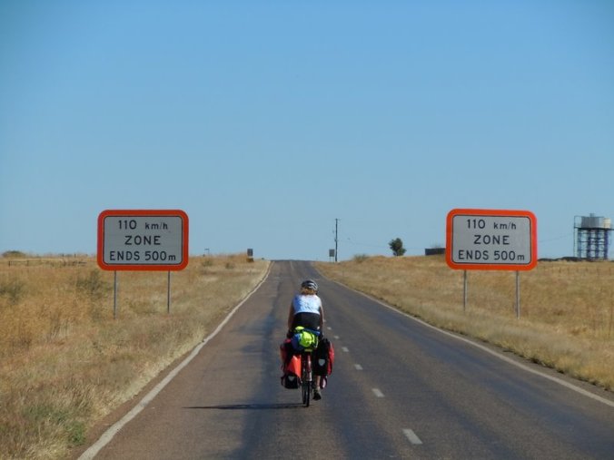 We were not moving fast in the morning due to our relatively shorter day. After dinner last night, we decided to try our own oatmeal and coffee this morning rather than chance the roadhouse. We watched the local brolgas wander the campsites for free food as we ate our oatmeal. We were ready to ride by 9AM but bumped into Larry and Hannah as they returned from a local bike ride themselves. Eventually we got rolling and almost had to stop right away to strip off all the extra clothes. It was quite warm today and starting riding after 9AM meant we missed whatever cold there was early in the morning.