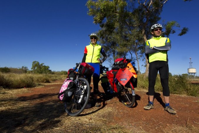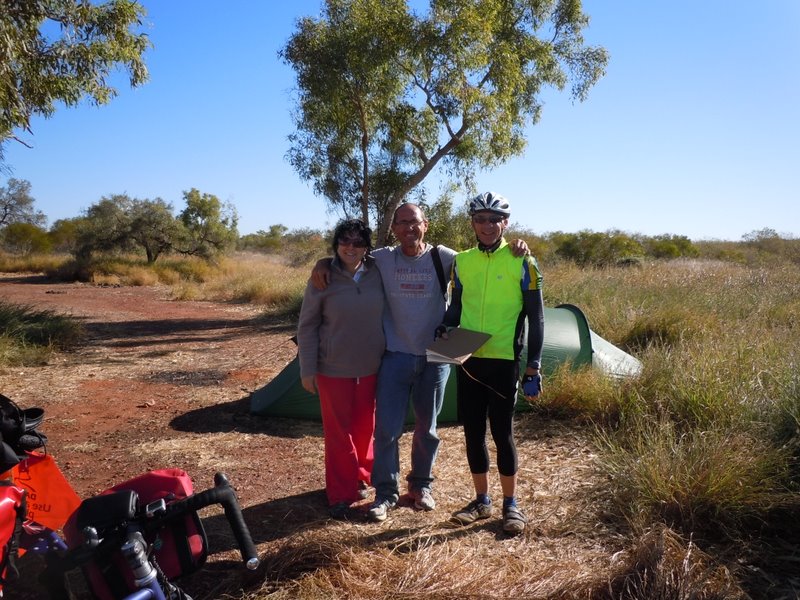 Another caravanner staying in the rest area came over to chat – Dirk is a professional photographer who has done lots of motorbike racing photos but is now doing a tour of Australia taking photos for a book on Australiana. He said he had seen many cyclists out riding the roads and wanted to take our picture for possible inclusion in his book. So, we posed a bit for the photos and chatted a bit more with him and his wife Wendy.