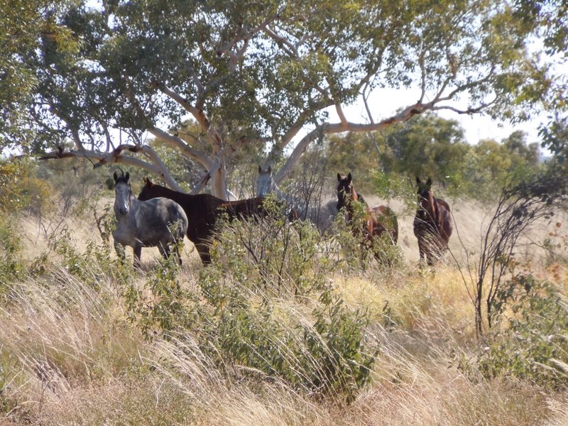 We only stopped a couple times getting to 3-Ways. Once for tea, and a second time when Steve spotted a herd of wild horses, or brumbies as they are called in Australia. They are an introduced species as they are in the west of the US and have the same sort of love/hate relationship with the locals. They were nice enough to allow us a photo, and not run off when we stopped in our day-glow outfits.
