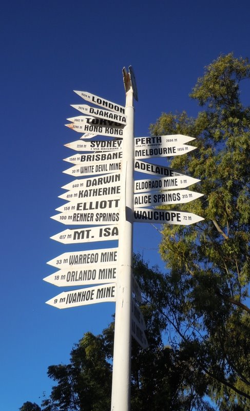 We slogged out 25ks to Tennant Creek while I’m sure Steve enjoyed a fine afternoon sailing into Banka Banka (our destination in a few days). We settled into the first caravan park that we came across into Tennant Creek. It seems to be a pretty rough town. Much like other places, the Aboriginal situation is hard to fully comprehend and form an opinion on based on a quick visit to an area. I’m sure that it is more complex than we will learn in a day or two, but it is sad to see the effect that alcohol seems to have on the indigenous community. While walking back from the grocery store, Nancy got called on to help an elderly Aboriginal woman and young girl try to get money out of the ATM. It appeared that neither of them could read and eventually Nancy helped them discover that their account did not have enough money to make a withdrawal. Again, it’s a complicated situation…