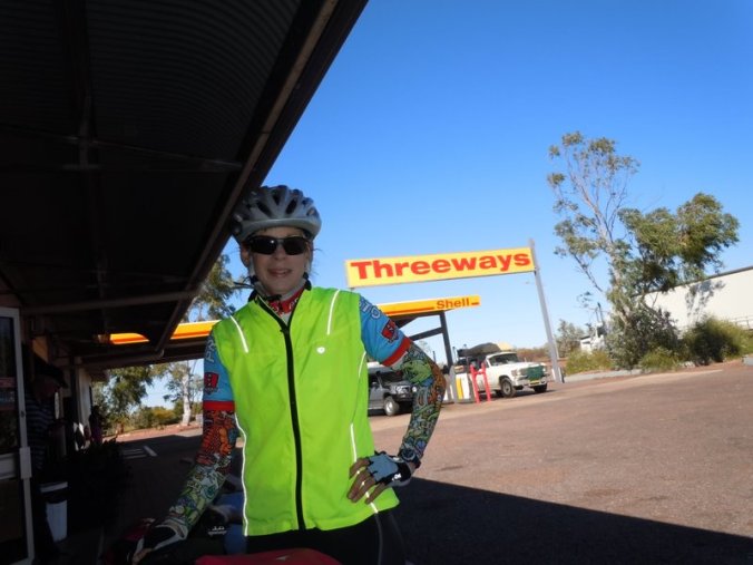 We continued on and made a stop at Threeways for our morning tea – lunch really, by the time we got there. Pancakes were on order and they tasted pretty good – with maple syrup even (suspect it was not real maple syrup but close enough to taste good). We met some Dutch folks there who were travelling from Perth up to Darwin so we had a fun time practising our rapidly decreasing skill at Dutch and talking to them about travelling generally. They were nice enough to give us a top-up on our water bottles from their tank as the water at Threeways was pretty brown coming out of the tap.