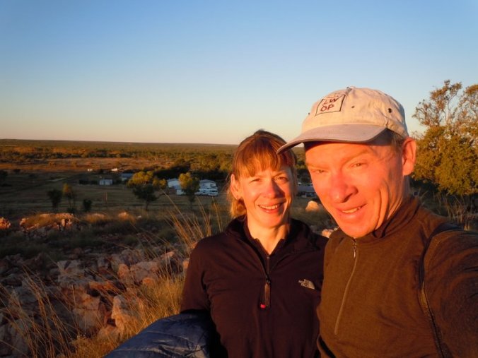 us with Banka Banka Station in background at sunset