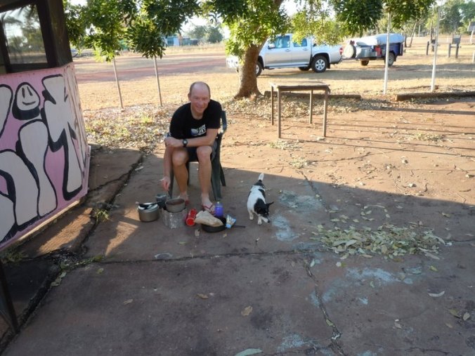 Dinner was in the camp kitchen with lots of leftovers made into a spaghetti sauce. Plus we had a couple rolls that we picked up from Fran. All and all an interesting day, a little history and some local characters to liven things up. Tomorrow we are off to Mataranka ourselves. They are supposed to have great natural hot springs at the park there. Hope that works out as we have 2.5 months of sore muscles to soak.