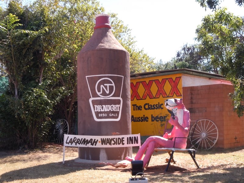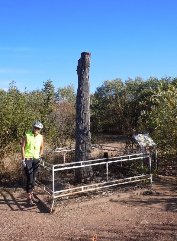 Both our first two stops were before we reached the actual highway. Yesterday it was 4k off to Daly Waters and those attractions were on the return route. Once on the highway it was pretty much nothing all the way to Larrimah. There was one roadside pull out with a very sorry looking monument to Alexander Forrest, a key contributor to the overland telegraph. The monument was small and a little beat up, it was surrounded by burnt out bush land and had clearly been used as a loo. It was probably not worth the 5k, 500m, 300m and “you are here” road signs. Given the lack of anything else to see, we concluded that the highway budget for brown roadside attractions had to be used somehow.
