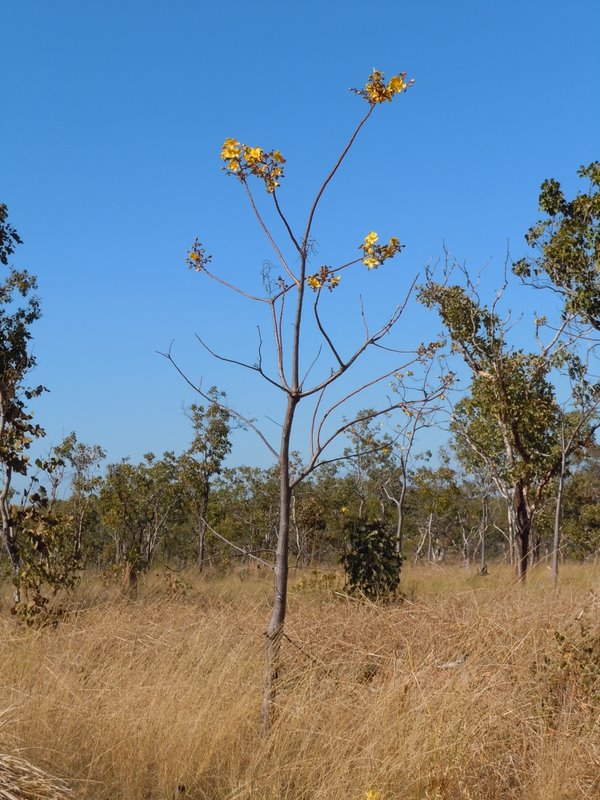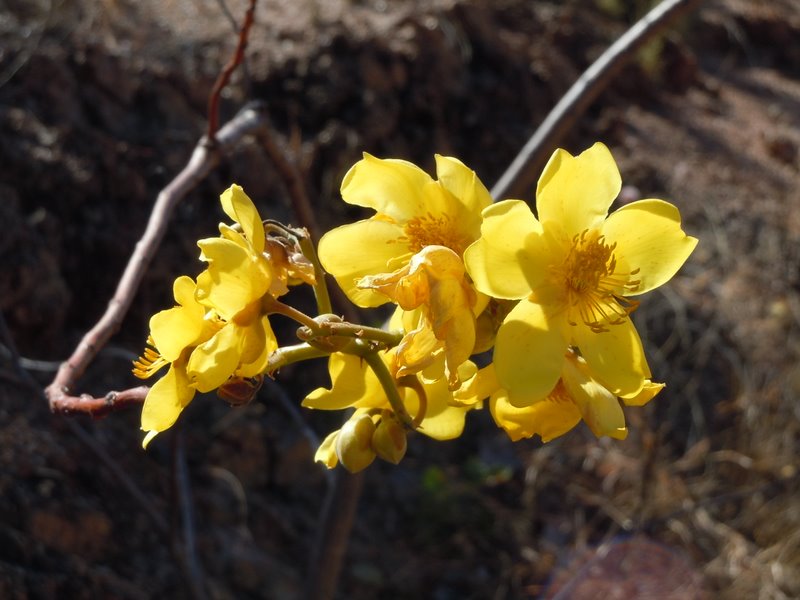 Today and two days ago, we passed by several trees that looked almost dead – no leaves but blooming with yellow flowers. I looked it up after we got to camp. We think it is a Kapok tree (Sue told me the name last night but I forgot to write it down). The flowers come out after the leaves fall out and are apparently high in vitamin C. The seed-pods release a puffy centre that was used in pillows during WWII. They are highly flammable though – yet another reason not to smoke in bed!