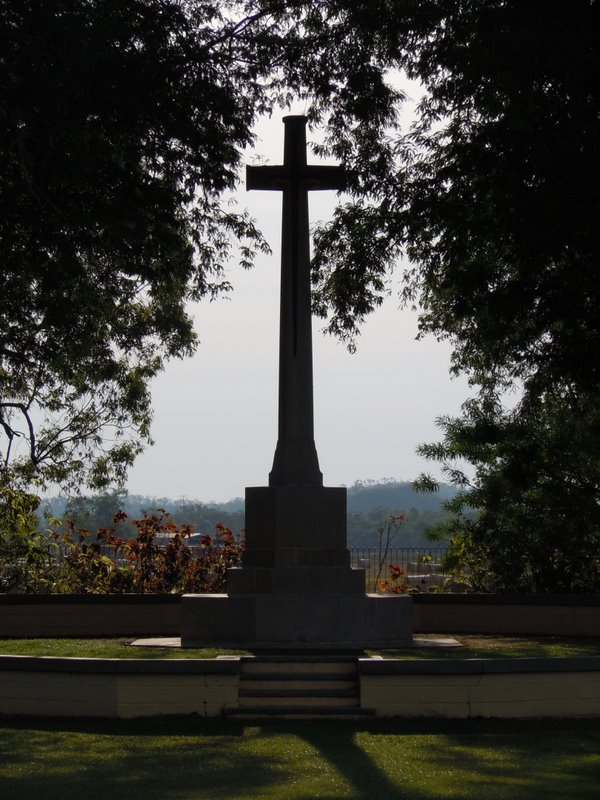 In the afternoon Nancy read her book (editor’s note – a well-deserved break after reading the terms of insurance coverage all morning to try to find a decent travel insurance policy before we leave Australia) and I walked 1k down to the Adelaide River War Cemetery. Many of the service men killed in bombings on Darwin were buried here. Most of the Northern Territory war sites have been slowly decaying, fading back into the outback. Here however, they have kept everything nicely painted and clean. The grounds were well groomed also. There are some 450 Aussie, British and Canadian soldiers bury there. All other nations repatriated their servicemen.