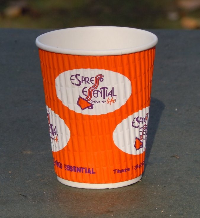 Finally today I managed to beg a free coffee cup from a servo, just the cup. Frequent readers will know that I’ve sworn off Espresso Essential coffee some weeks ago. Today, through the generous donation of the Adelaide River BP service station, I bring you a visual of the ubiquitous EE orange cups. Remember, if you like your coffee at least a little brown, pick black on the EE machine.
