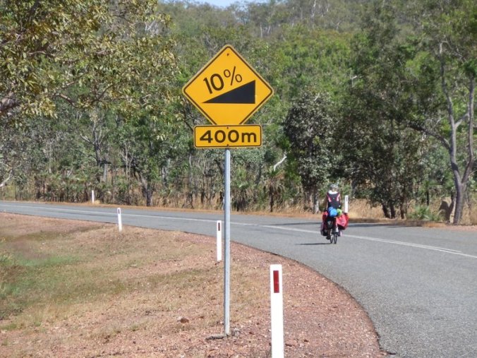 The park road goes up and down a small escarpment a couple of times if you follow the full length of the road. This means some climbing and descending – with one section even earning the name “jump up” – Aussie for “it’s bloody steep mate”. And it was steep for our 3,000 ks of flat legs. We were both in granny/granny gears but at least we didn’t have to walk.