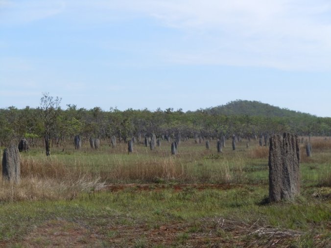 A little way into the park we came across the magnetic termite mounds. Grassland termite here live where the ground water is very high. This means that their whole structure has to be above ground and temperature control is more difficult through the wet and dry seasons. These particular colonies have figured out how to build with large north and south faces on their mounds. They move inside the mound to the north (sunny) side in the morning to get warm, then back to the south side in the arvo to avoid baking. Pretty clever for a termite.