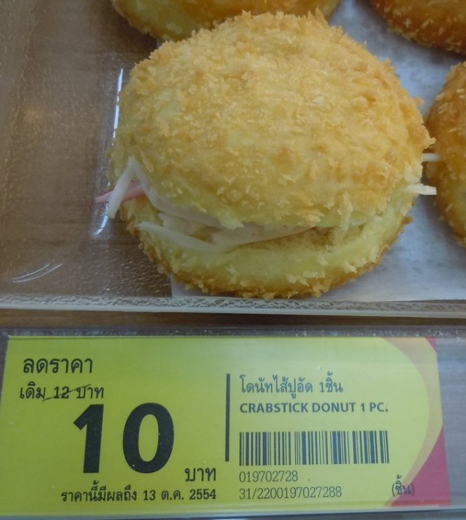 Crab Donuts – Yes, that’s right, crab donuts. If you don’t believe me, take a look at the photo below. It’s not real crab, more like that fake crab made from fish by-products but all the same it’s weird. The fish flakes on the outside are a nice touch as well.