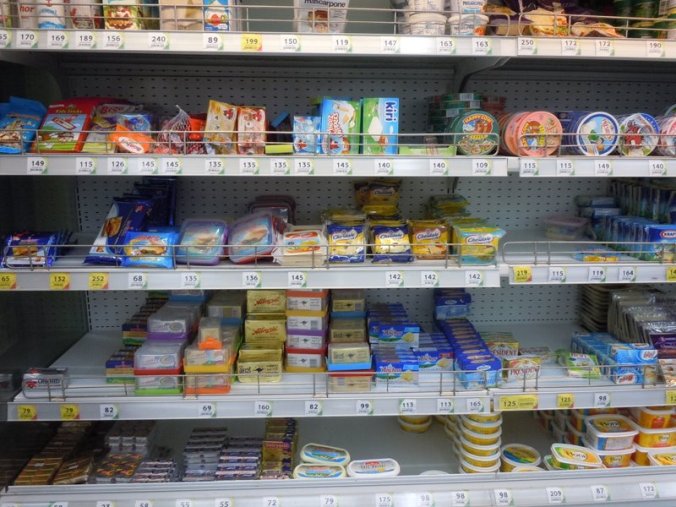 Cheese is even less big – The photo below is the entire cheese section. In fact, the photo is of the cheese, butter and margarine section. Most of the cheese is imported and highly processed. While we’ve seen cows and there is lots of long life milk, they must not make much in the way of fresh cheese.