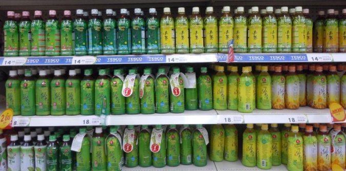 Green tea in bottles – There are literally rows and rows of green tea in bottles. In pretty much every flavour. We actually like these and pick them up quite often on our 7/11 stops while on the road.