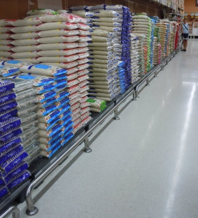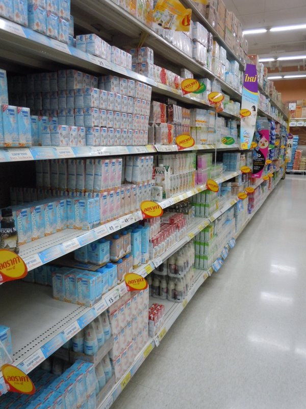 Rice is big – If cereal and cheese are small, rice is massive. The photo below is of the rice section. Yes, that is Nancy at the end of it waving. I didn’t know that there were so many different kinds of rice. It turns out that Thailand is the world’s largest rice exporter – but they appear to like eating it as well.
