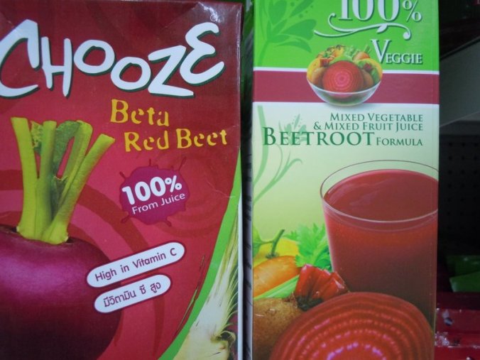 Beetroot or Beet? – In Australia, we call it “beetroot”. In America we call them “beets”. It would seem that the Thais did not want to take a side in the argument and have one of each in the juice section.