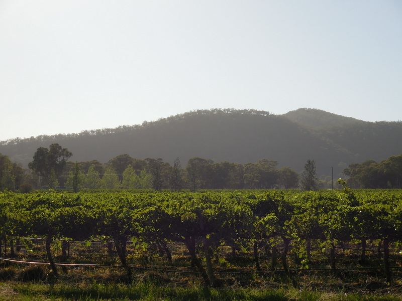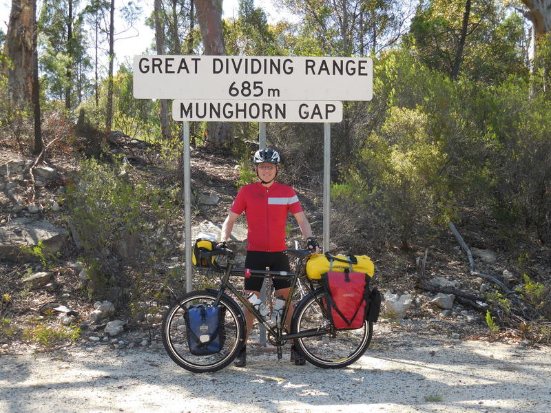 Today we got payback for the headwinds of the recent days – we had a smashing tailwind for most of the day and boy was it nice. We worked our way out through the wineries (including the Petersons winery), and then headed up through Munghorn Gap Nature Reserve. It was a beautiful climb, very green and shaded with beautiful scenery. We stopped at a picnic area on the way down for morning tea – beautiful spot, with the best-ever pit toilet, made out of cedar with no smells at all. On the way down we spooked some big kangaroos and an emu on the side of the road – sorry they were too fast for a photo.