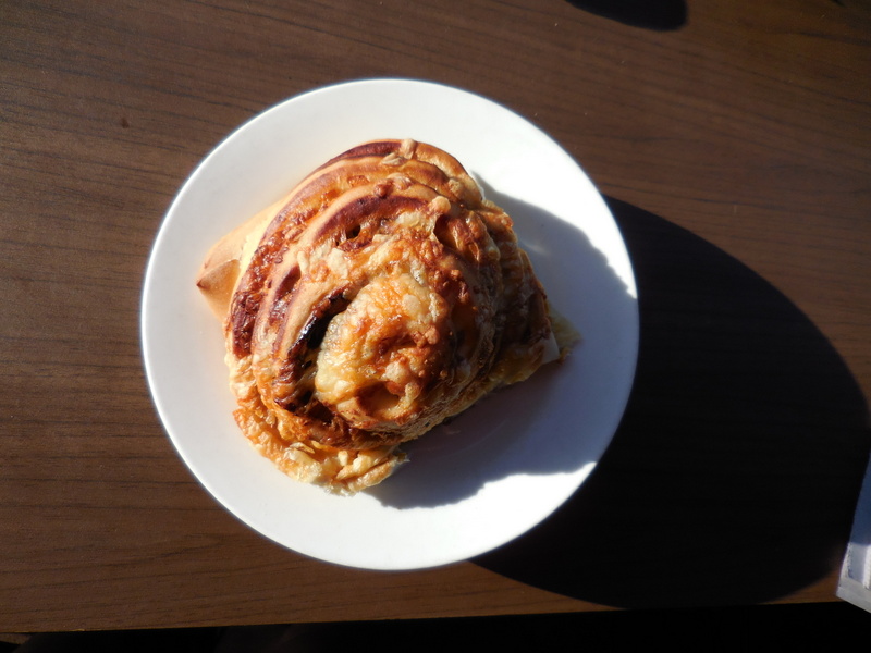 Anyway, 6am rolls around and he was up bright and cheery, all of the struggles during the night forgotten. We packed up, did a last minute check and headed to the Mudgee Bakery for breakfast. Dave went for his favourite vegemite scroll, and I ended up with two teeny fruit scones and some raisin toast. Dave helped me finish off the raisin toast and we hit the road toward Bylong by 7:30.