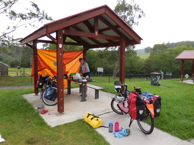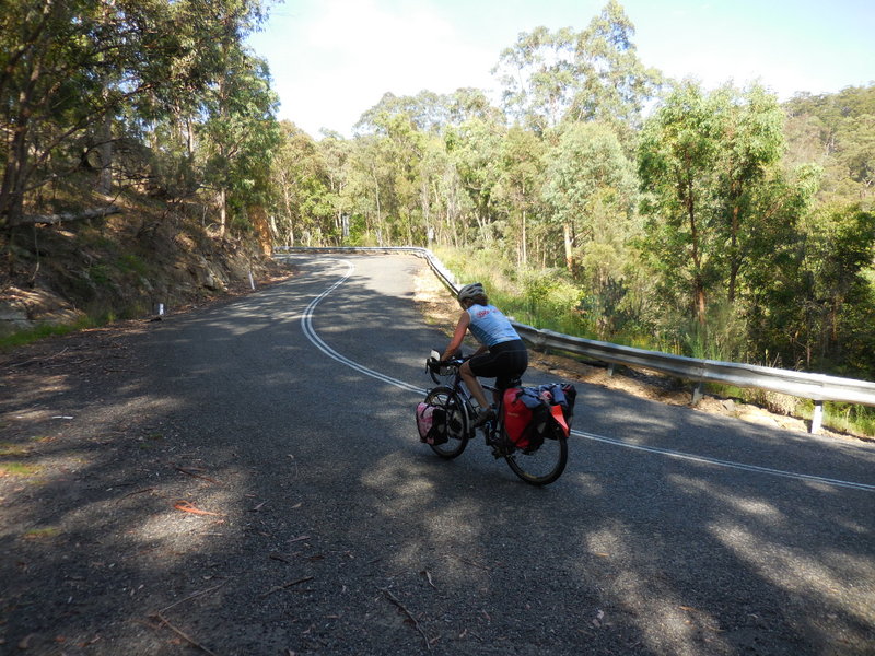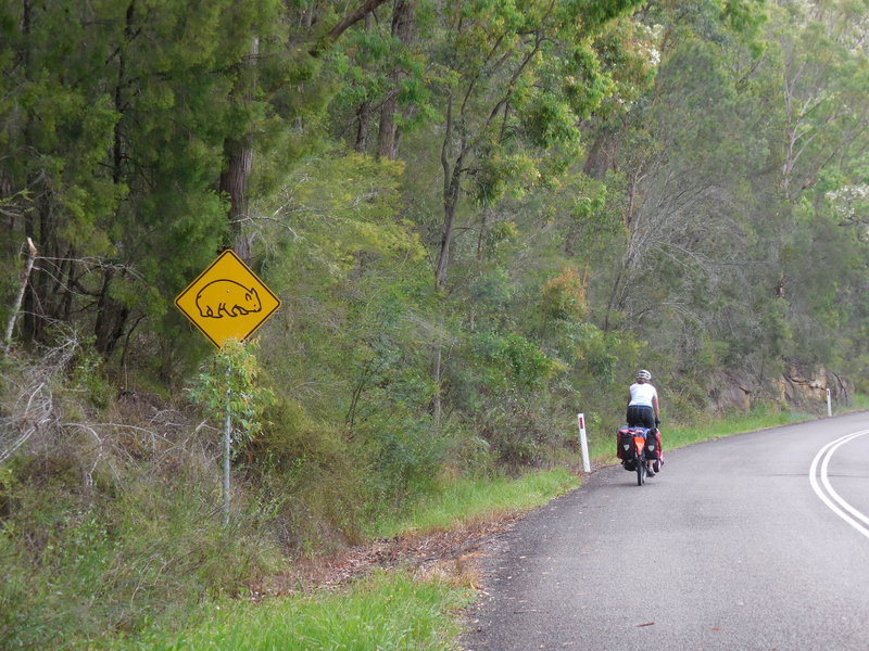 We had nice ride out Wollombi Road to start the morning.  There was virtually no traffic and the rain had freshened everything up.  We’d only ridden this road in this direction once and that was 8 years ago on road bikes.  It was a completely different story on loaded turning bikes.  There are two steep climbs then a series of rollers that take you to the conservation centre at Bucketty where we had morning tea.  By this time the temperature and the humidity was rising and we were soaked with sweat when we stopped.  We half-expected Adrian to catch up by now but it turns out that we never saw him the rest of the day – he could have passed while we were at one of our stops.