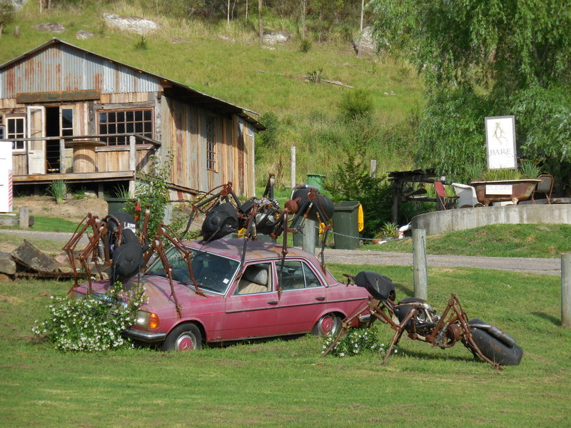 From Bucketty, it was 22k to Peats Ridge – one of our favourite cafe stops.  This was supposed to be downhill but it wasn’t.  The loaded touring bikes gave us a real test on rolling terrain – it doesn’t take much of an uphill for the weight of the bikes to stop the momentum you get coming off the downhills.  We were ready for lunch at Peats for sure.  Too bad our favourite cafe was closed…  We settled for sausage rolls at the servo across the street.