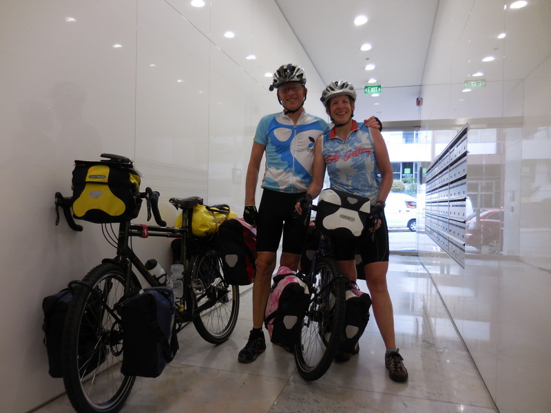 So, Plan C came into play.  Just put our heads down and ride home all the way.  We had a slight tailwind and everyone says “it’s downhill from Hornsby to the city”.  Well, it is not all downhill and traffic was a little bumper to bumper in places but we managed to keep up with the flow and make it all the way home.  While people on loaded touring bikes would generally be a novelty, in rush hour traffic, I don’t think folks were too impressed to have us out there.  But we made it – I think it was the pie we shared at Pie in the Sky that did the trick…
