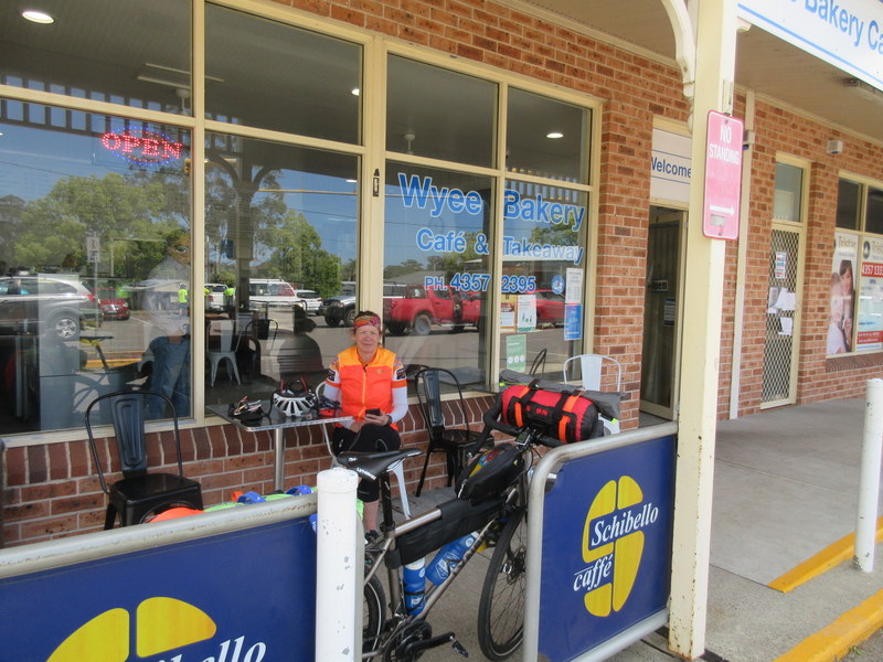 At 45k we found a bakery in the small town of Wyee. There are heaps of new housing developments in that part of the coast. We had to fight off tradies at the bakery but were glad to have passed through the area before all the houses are built and full of new residents. Some of the roads will need wider shoulders if people start moving in – we can only hope that the local council has that in the plan.