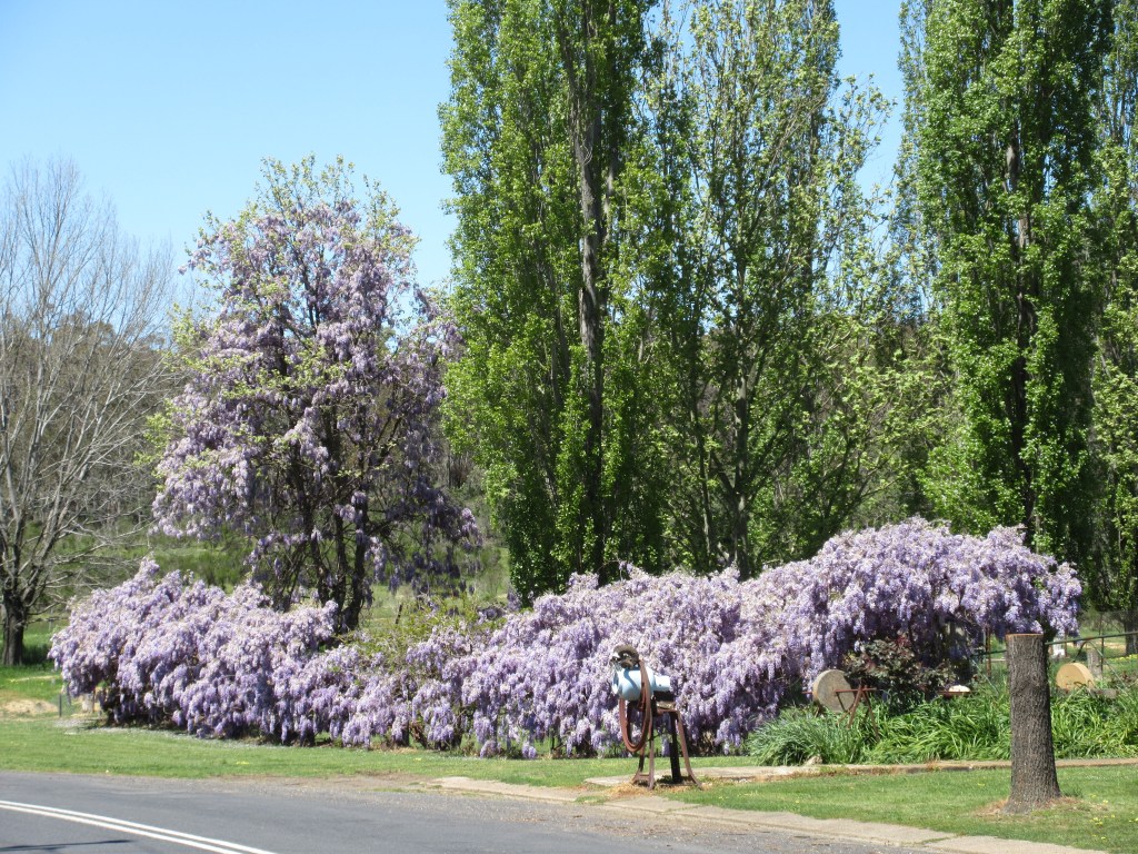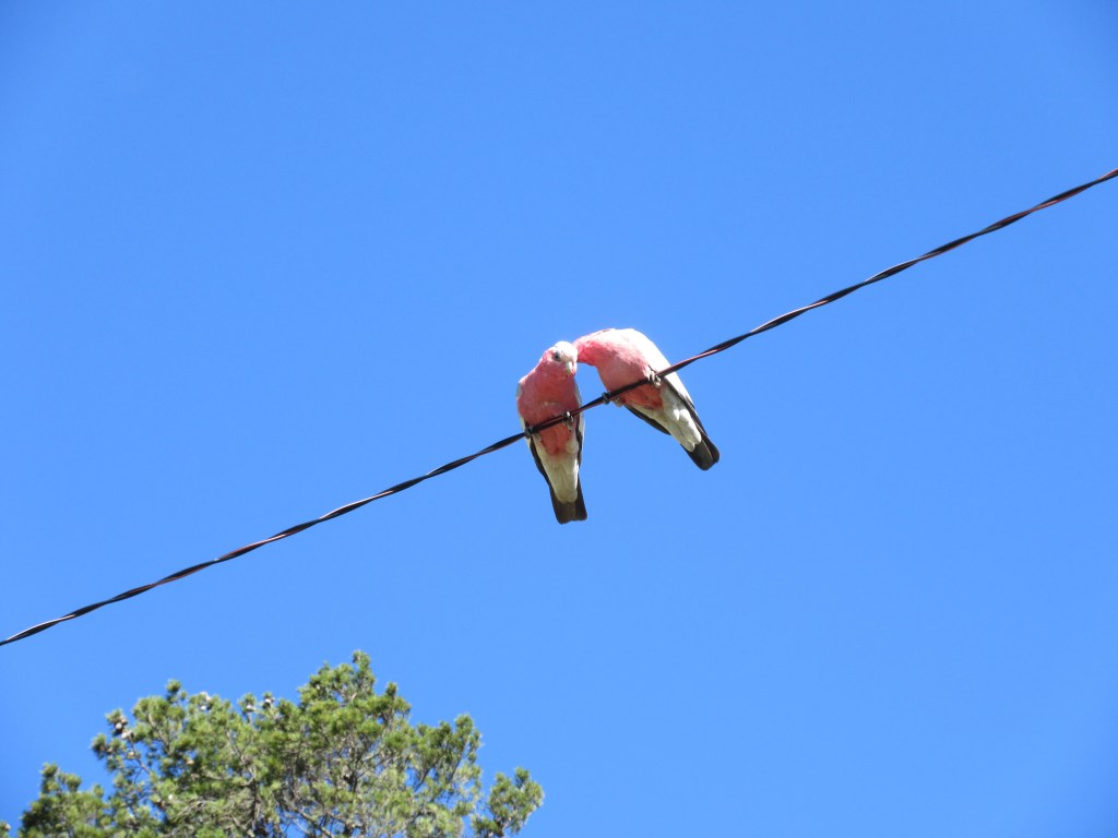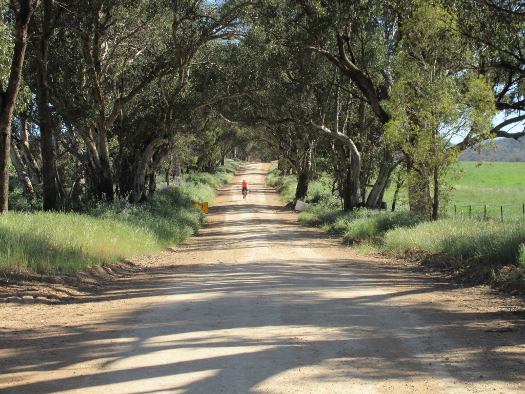 We had to retrace the last 8km out of Gulgong that we rode in the other day but today we had much less wind and stunning blue skies. We saw one other Saturday morning rider but not too much traffic until we hit the Castlereagh Highway at 15k. We only had to ride about 2km on the highway and there was still not much Saturday AM traffic but we were happy to exit at Lesters Road. We’d mapped out a short-cut across Lesters and a few other back roads that also included some dirt. The short-cut saved 5km, lasted 7km and we were passed by only two cars. You’d have to call that a successful short-cut all the way around. It is so nice having gravel bikes with slightly wider tires – we don’t think twice about blasting off on unsealed roads. CWCT certainly gave us lots of practice and confidence too.