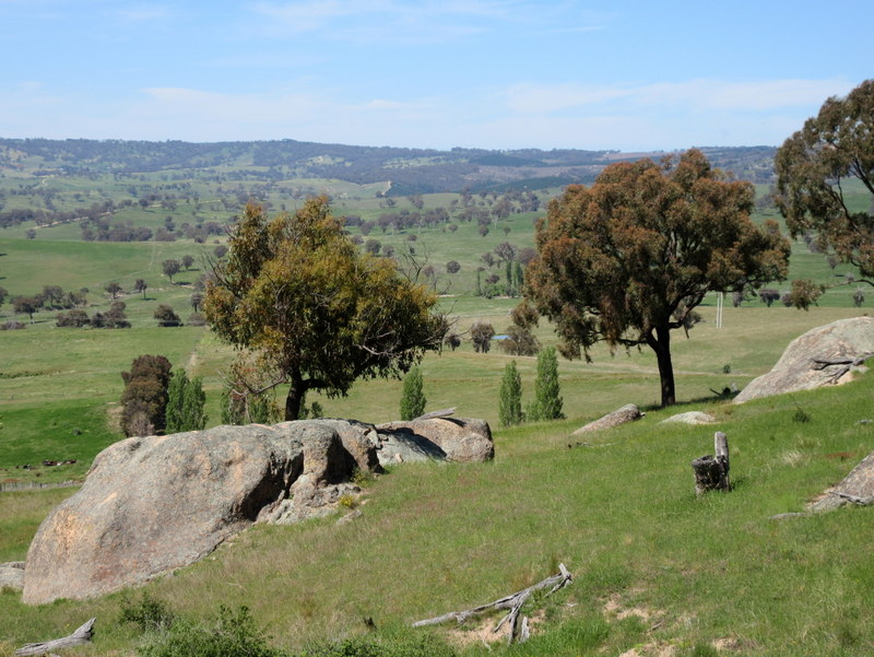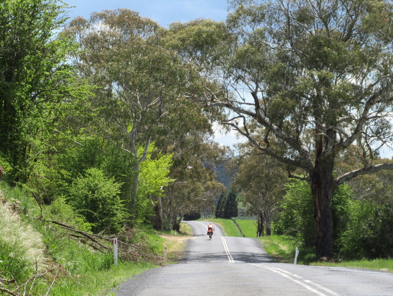 There were no towns or services along the way today, just small localities, so we finally stopped at the only junction of the day to eat a couple of PB&J sandwiches in the shade of a tree. Despite the very chilly morning it was now quite warm in the sun and we were seeking shade when we could find it. A few more ups and downs and after a fairly steep sustained climb (where Dave registered 13%) a ute pulled over and a fellow got out holding up a couple of bottles of water. Joe, an immigrant from Croatia who had a farm nearby, had been a cyclist himself and wanted to chat about the bikes and riding in general. The nice cold water hit the spot, and it was fun to have a break and chat with a local.