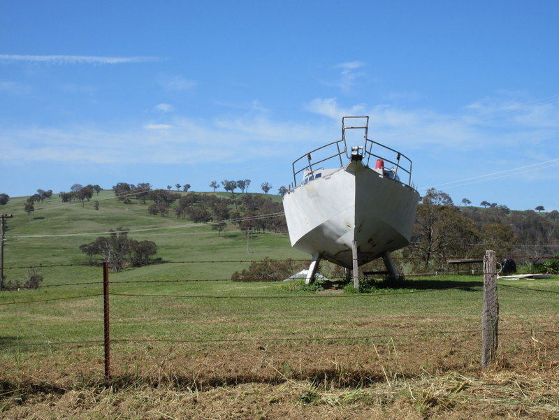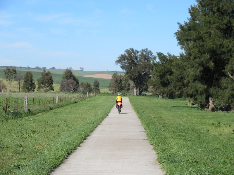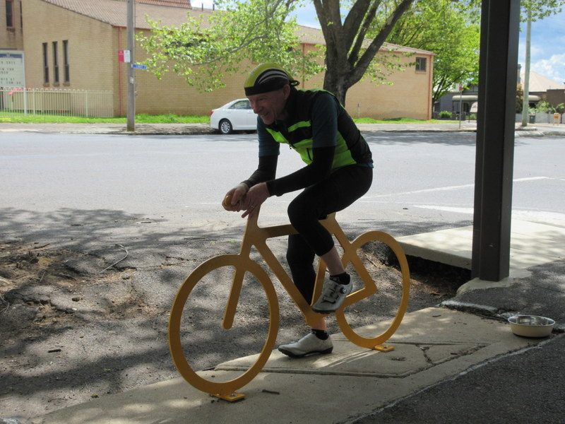 A few more hills to get over and we were soon in Orange proper. We had planned to head into the central area and grab some lunch but as we rode past Bill’s Beans we made a quick stop. This is a nice little corner cafe with some seriously good coffee and food. Dave went straight for the Reuben sandwich, as he generally does when it’s available, and I had a take on an egg and bacon roll – both were delicious. Plus there was a neighbourhood cat to entertain us while we waited for our food. Hard to beat.