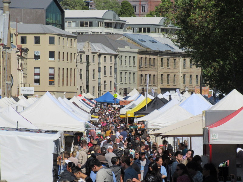 Saturday in Hobart means Salamanca Market. The market is one of the biggest in Australia and we certainly do enjoy visiting. We learned today that it has been operating in skeleton mode since lock-down with some stalls only getting to set-up every other week and some stalls were only back today for the first time in almost 6 months. It was slightly smaller than during our past visits but for the shop owners, today marked what they hope is the beginning of the end of restrictions on the market. Lots of safety precautions are in place for the market – we were all required to log in (via an app or manually providing our details) to facilitate contact tracing should someone who had attended the market be diagnosed with Covid.  Actually this is required any time you want to dine in at a restaurant or cafe and at many other places.  Fingers crossed that we don’t get more cases here forcing the market and others to hibernate again.