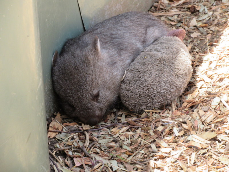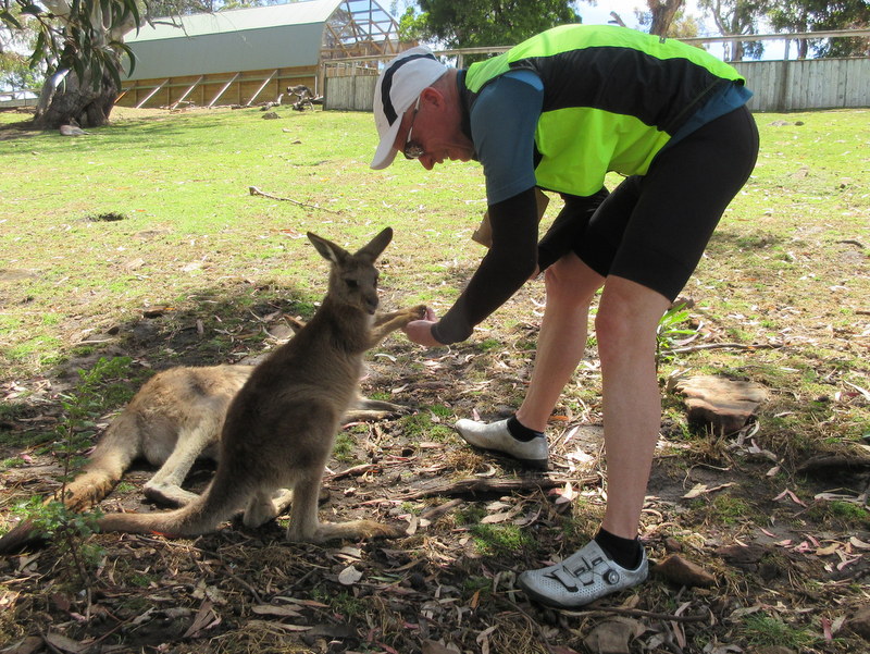 Bonorong hasn’t changed from our previous visits but the animals are probably all new and were more or less happy to see us. It was hot but we managed to get a few of the resting roos to feed from our hands. Nancy found one to feed without the recipient even having to get up. I managed to get a Joey to eat from my hand. He and his mom took turns holding my hand down at head level so that I wouldn’t walk away. They weren’t aggressive but they weren’t willing to let me go until I emptied my oats bag for them.