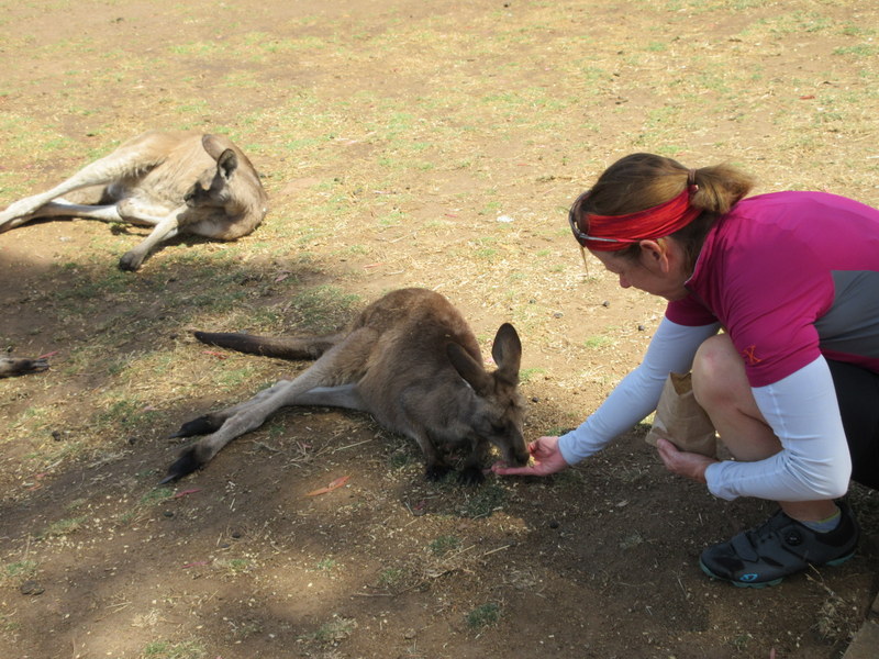 Bonorong hasn’t changed from our previous visits but the animals are probably all new and were more or less happy to see us. It was hot but we managed to get a few of the resting roos to feed from our hands. Nancy found one to feed without the recipient even having to get up. I managed to get a Joey to eat from my hand. He and his mom took turns holding my hand down at head level so that I wouldn’t walk away. They weren’t aggressive but they weren’t willing to let me go until I emptied my oats bag for them.