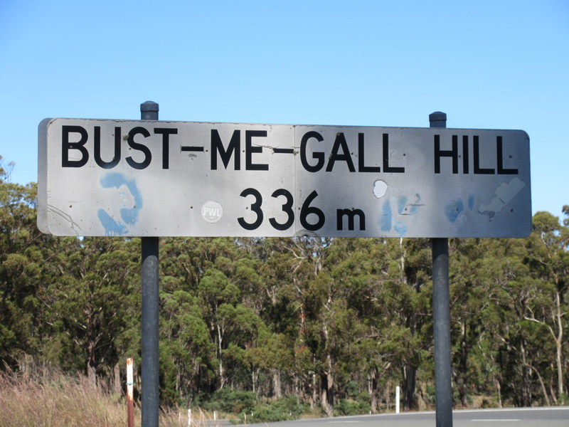 Eventually we pulled ourselves from the frivolity of Richmond and headed out for the day on our ride. The morning was marked by two short hard climbs. Neither of them was nearly as hard as we read about (they hardly ever are). The first climb to Black Charlies Opening was the longer of the two climbs but it wasn’t quite as steep. The second climb up Bust-Me-Gall-Hill had one pinchy bit but it wasn’t too bad. I’m happy to report that Bust-Me-Gall-Hill did not Bust-Me-Gal-Nancy.  I’ve been planning that line for almost 20 years and our first trip to Tassie!